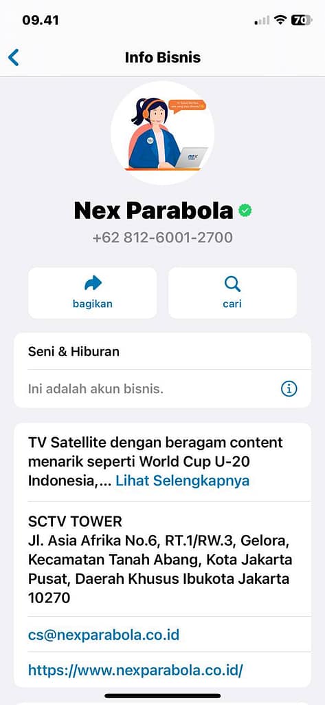 Info lebih lanjut silahkan bisa hubungi CS NEX PARABOLA melalui Whatsapp : 081260012700