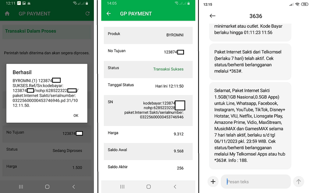 Langkah-langkah pembelian Telkomsel Omni Channel melalui aplikasi GP PAYMENT