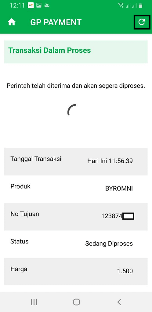 8. Tunggu sampai transaksi berhasil, jika dirasa terlalu lama disarankan untuk klik tombol refresh pada pojok kanan atas.